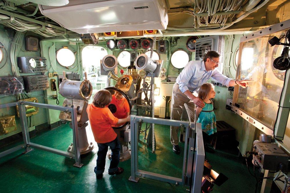 Entra nel sottomarino lanciamissili balistici Growler che offre ai visitatori del museo uno sguardo diretto sulla vita a bordo di un sottomarino e una visione a distanza ravvicinata del posto di comando centrale balistico, un tempo top-secret.