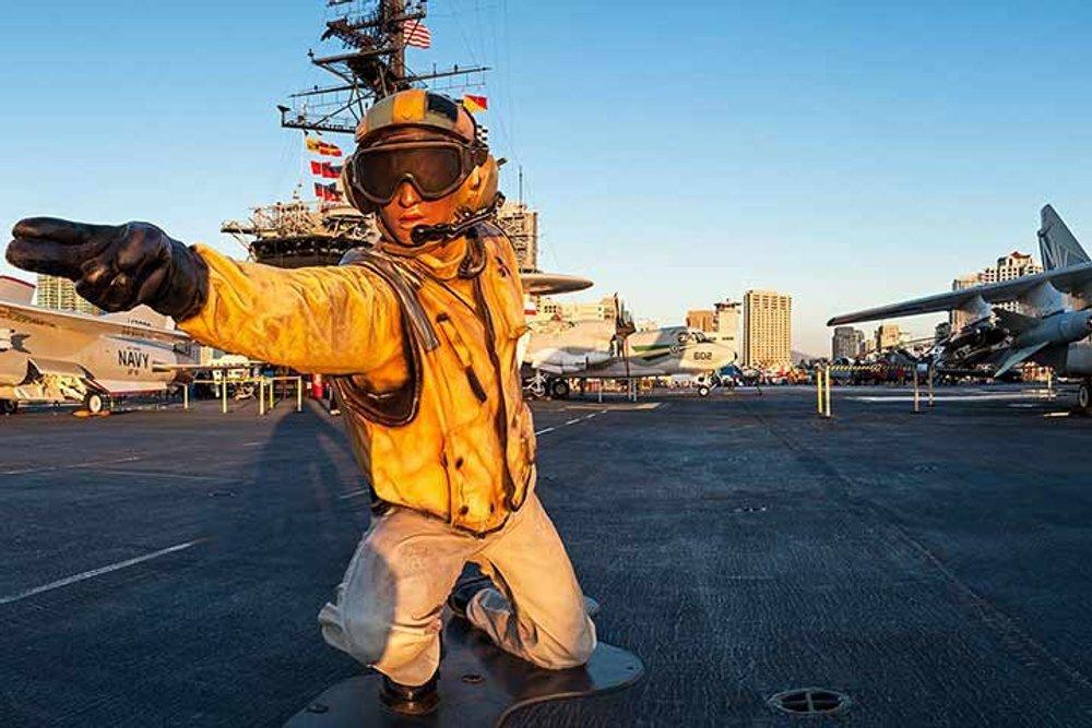 Goditi la migliore vista di San Diego sul ponte di volo di 4 acri, dove potrai assistere a dimostrazioni sulle pericolose ed emozionanti procedure di decollo e di atterraggio.