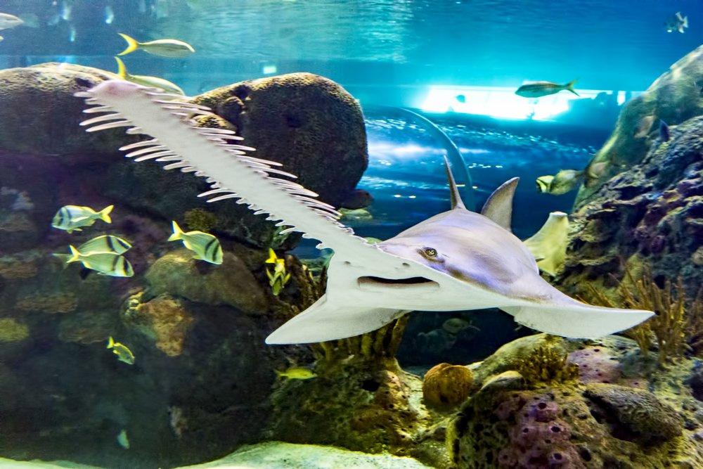 Sali sulla passerella mobile per attraversare il tunnel sott'acqua Dangerous Lagoon e ammirare da vicino gli animali più temibili dell'acquario, tra cui squali, razze e pesci sega.